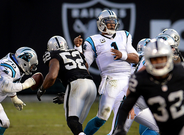 This game had plenty of reasons for suffering Raiders fans to panic. Life was great at halftime when Oakland had a 24-7 lead punctuated by Khalil Mack's pick six of Cam Newton and subsequent jump into the Black Hole at the end of the second quarter. It was the first interception and touchdown of Mack's career.