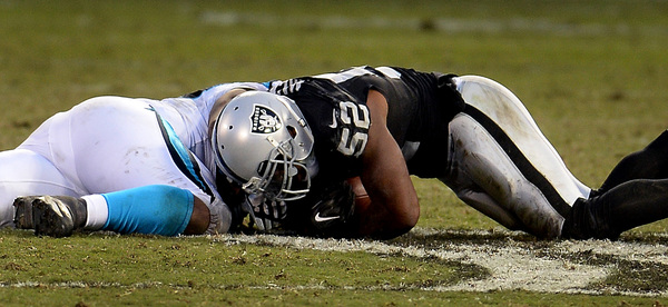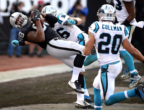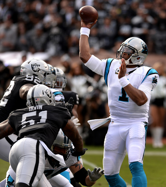 After another Murray run, Carr threw incomplete twice and the Raiders went ahead on a Sebastian Janikowski 23-yard field goal. But that still left Newton with 1 minute, 45 seconds.