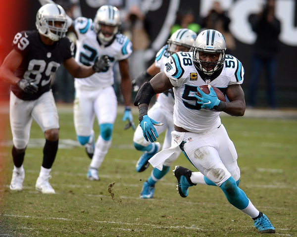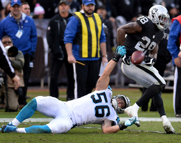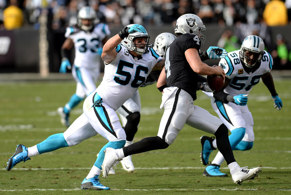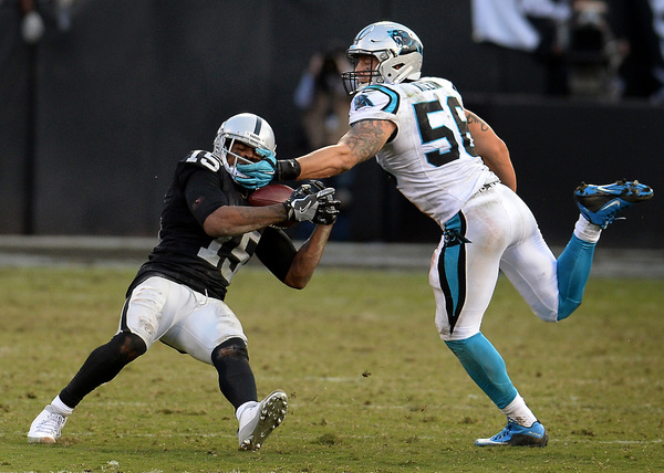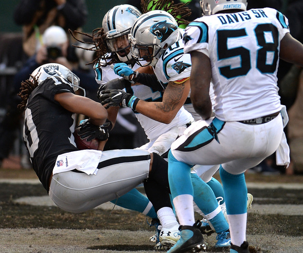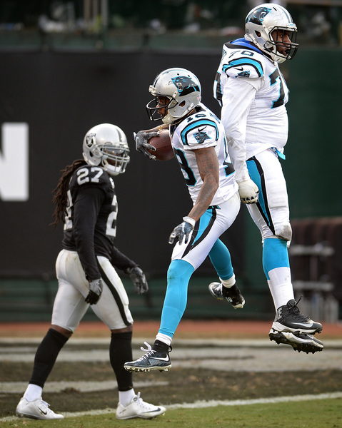 Carr's return didn't pay immediate dividends. He completed his first three passes, then tried to scramble and didn't see Thomas Davis as he undercut his pass attempt to Amari Cooper for an interception. The Panthers turned that into Jonathan Stewart's second touchdown of the game and suddenly Carolina had swarmed to life and took a 25-24 lead.