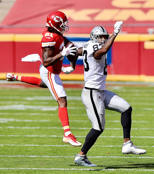 _ The bounceback: Carr's 46-yard touchdown strike to Agholor brought the Raiders within 14-10 with 11:48 to play. Coming as it did after a bad interception to set up a Kansas City touchdown, the Raiders did something they seldom do in Kansas City. Answered a score with a score.