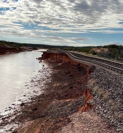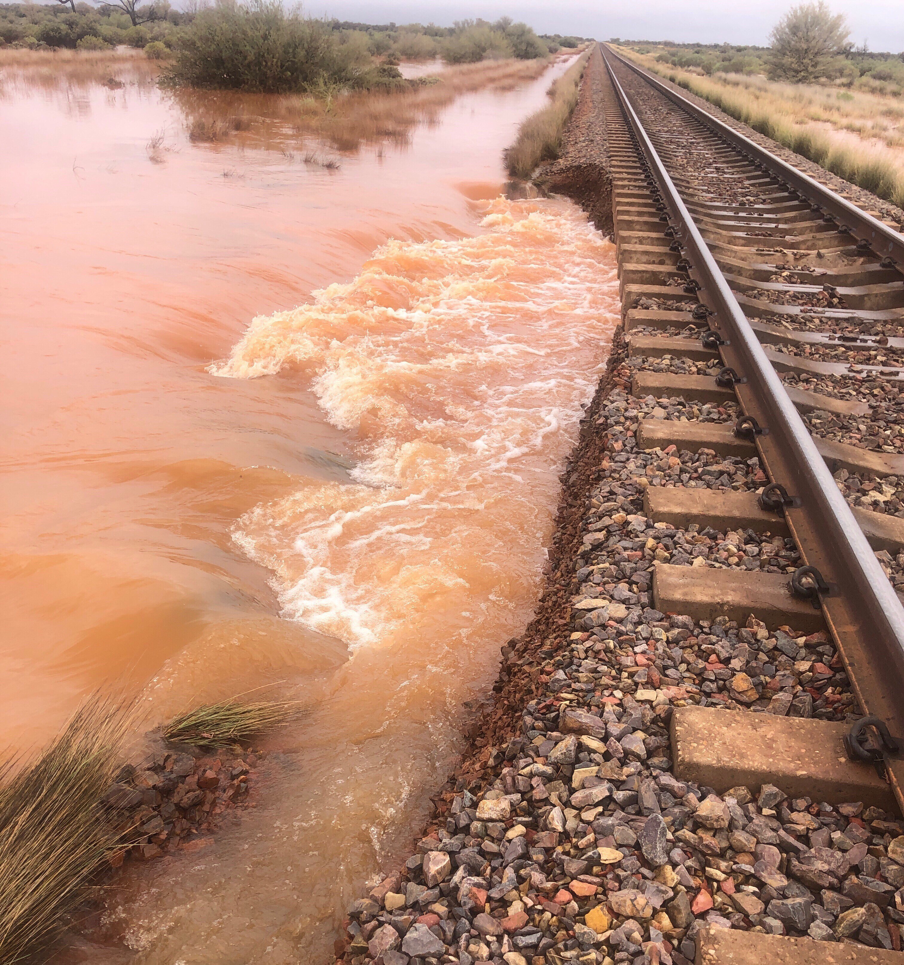 Outback flooding over the past week has caused major damage along part of the rail line between Coondambo and Lyons, 473 kilometres north-west of Port Augusta.