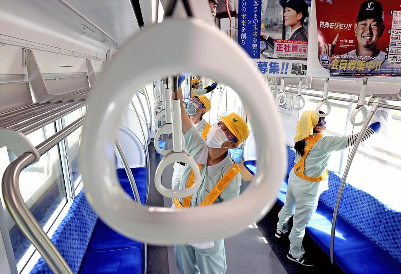 "We're working really hard to lower the risk of infection by thoroughly disinfecting everything, so I hope people will feel safe when riding the train," said an official of the company in charge of maintenance at the railyard.