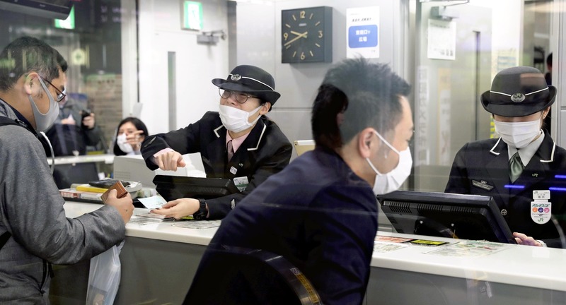 There is an increased risk of being exposed to close contact with those infected in the tight confines of enclosed rail cars. JR companies had already allowed their staffers, including station employees and train crew members who directly serve customers and passengers, to wear masks amid the potential spread of the new type of pneumonia.