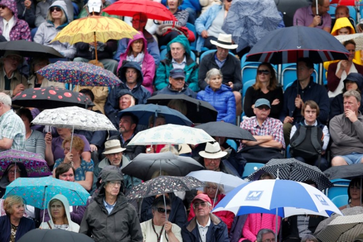 While fans sought cover and raised umbrellas, organisers pushed back the resumption of play several times before finally accepting the British summer weather had got the better of them at around 6pm local time.