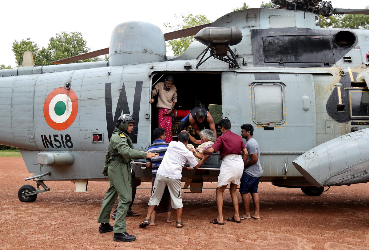 A Reuters witness in a relief helicopter in Chengannur, a town in southern Kerala, saw people stranded on roof tops and waving desperately for help.