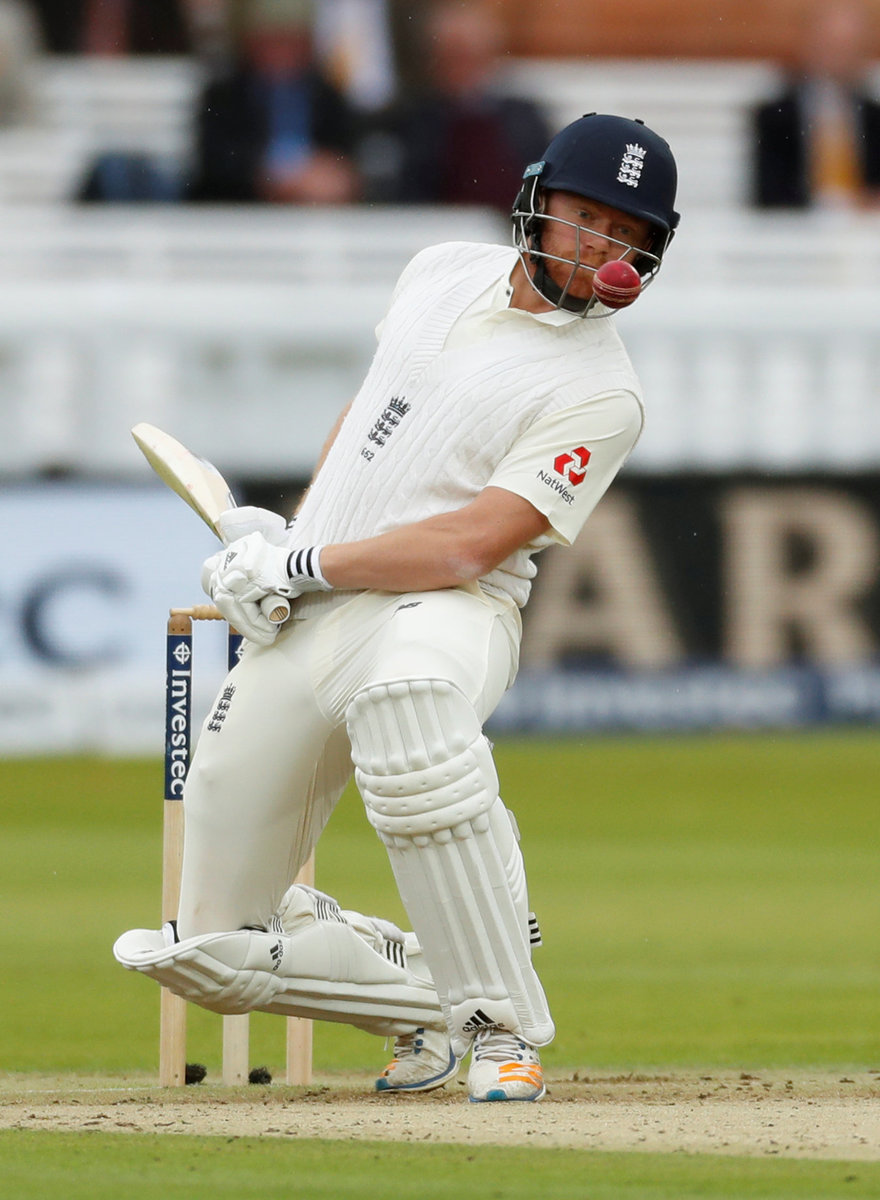 Earlier Stokes had been given solid support by Jonny Bairstow, sharing a 56-run sixth wicket partnership that ended when Bairstow fell lbw to the impressive Roach for 21.
