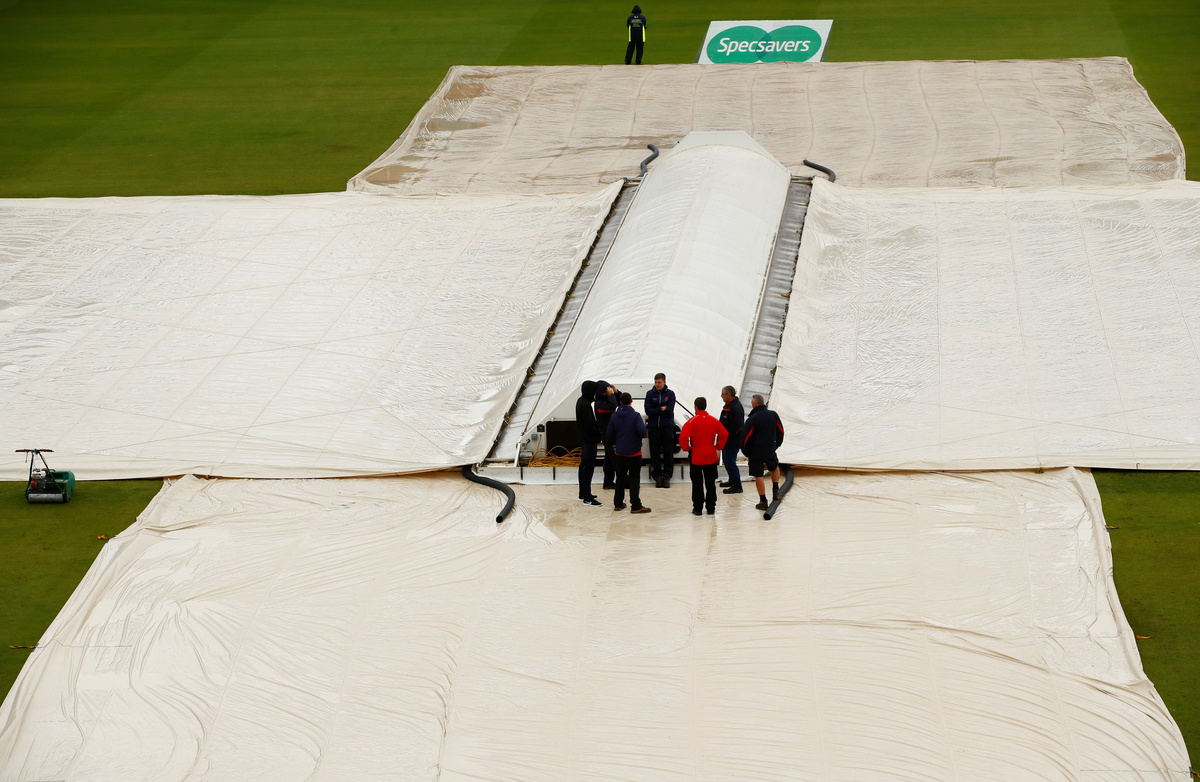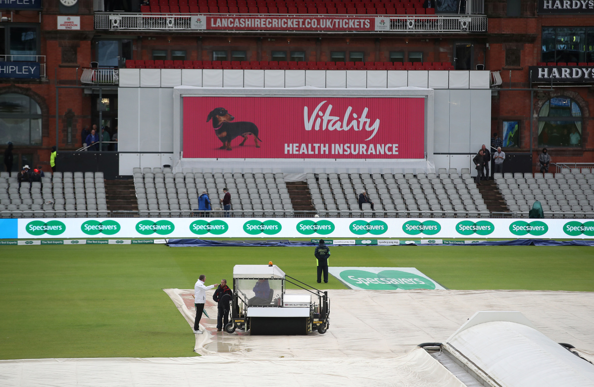 Heavy rain wiped out the entire morning session at Old Trafford and England quickly lost nightwatchman Craig Overton -- who was caught by first innings double centurion Steve Smith at second slip off Hazlewood.