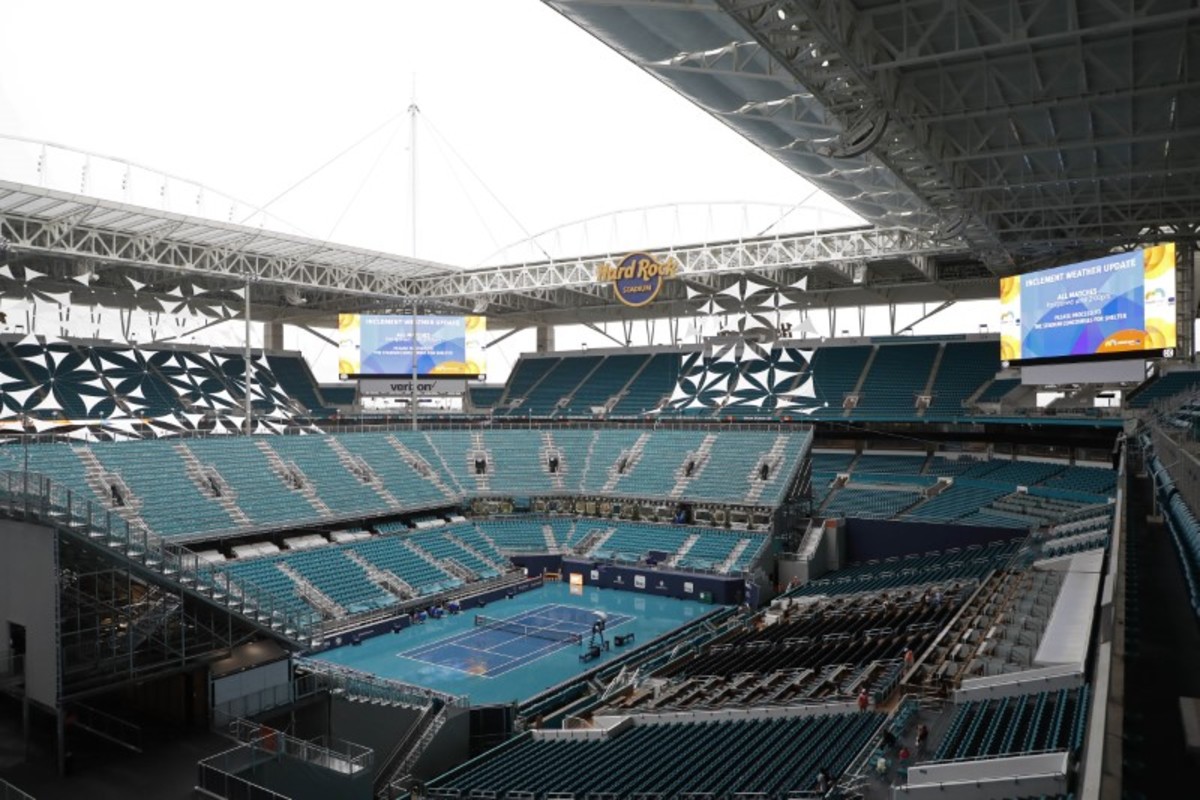 Having outgrown the cramped quarters of Key Biscayne's Crandon Park, and unable to secure the necessary approvals to renovate and expand, the Miami Open has moved to the home of the NFL's Miami Dolphins but the day-long rain spoilt the moment.