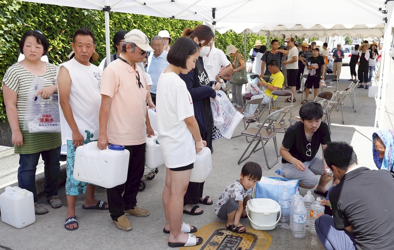 A serious water shortage has continued in Kure, Hiroshima Prefecture, where more than 80 percent of households have been hit by cuts in supply. The city government set up water stations at 40 locations in the city, but the water was not sufficient, prompting it to establish more stations on Tuesday.