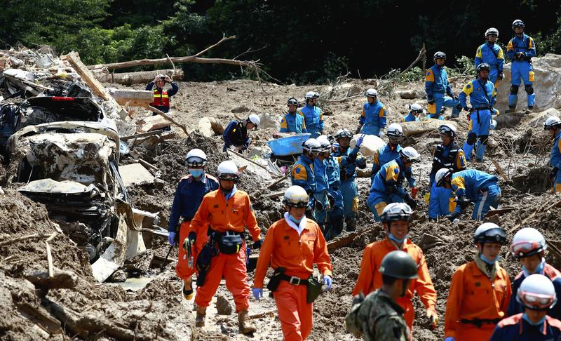 A 54-year-old nurse who has been visiting evacuation centers in Kumano, Hiroshima Prefecture, said: "Pharmaceutical products, such as antiseptic solution, are running short [at evacuation centers]. Some evacuees have suffered abrasions but left them untreated. There are fears of infection." People remained missing after a landslide in the town.