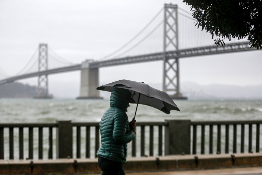 Forecasters also said strong winds accompanying the storm could lead to power outages. Karly Hernandez, a spokesperson for Pacific Gas & Electric, said the utility that covers much of California didn’t have any major outages on Sunday. Crews and equipment are staged across the state to respond quickly if the power goes out, Hernandez said.