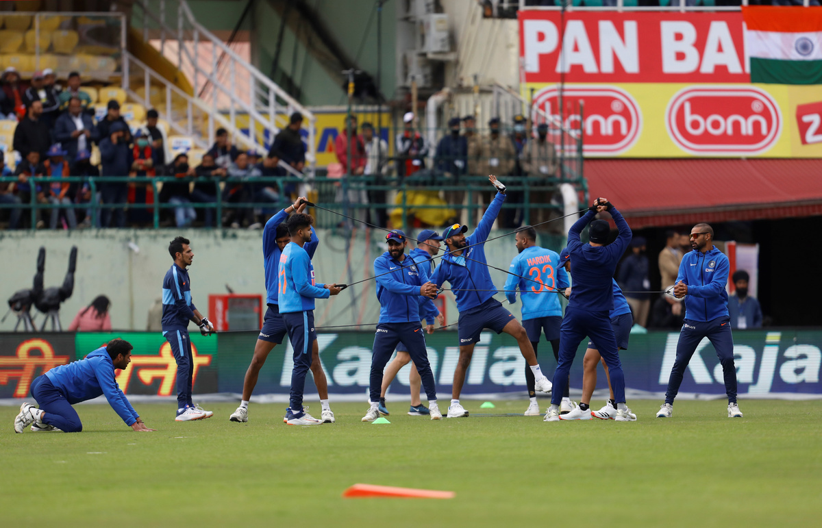 Cricket - India v South Africa - First ODI - Himachal Pradesh Cricket Association Stadium, Dharamsala, India - March 12, 2020 India players during the warm up before the match REUTERS/Anushree Fadnavis