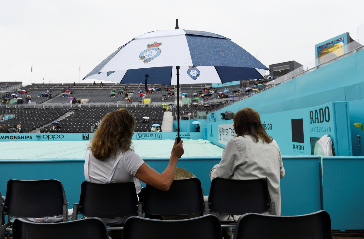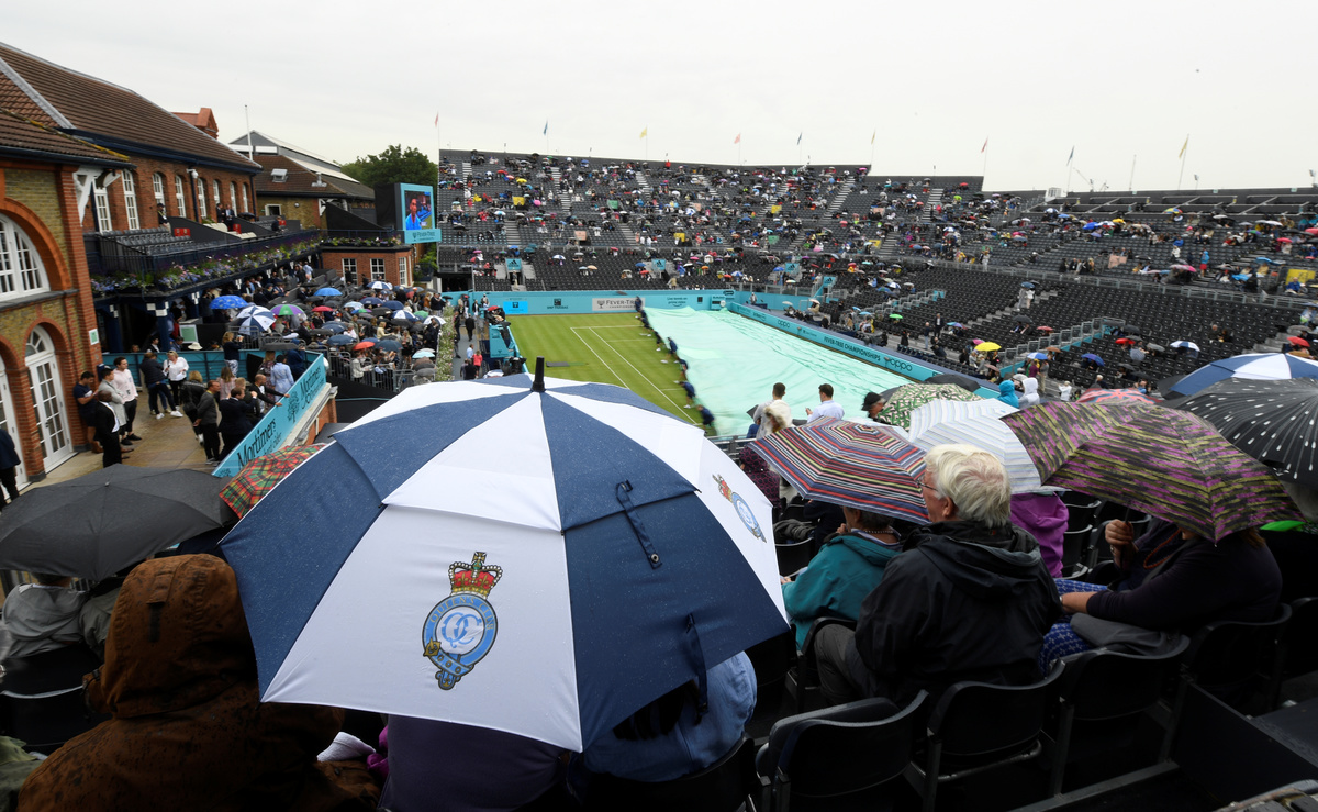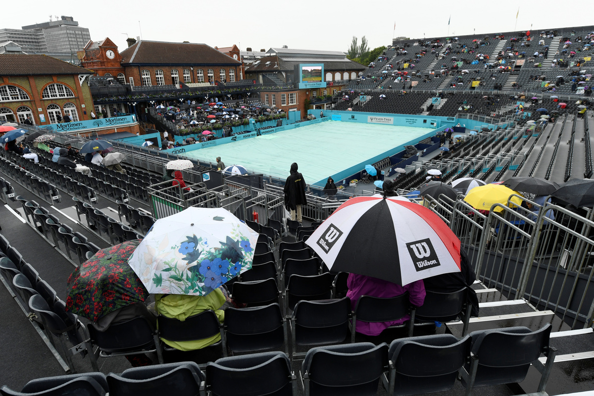 (Reuters) - Rain forced the cancellation of the second day's play at the Queen's Club Championships on Tuesday, with matches involving the likes of Stefanos Tsitsipas and Juan Martin del Potro rescheduled for Wednesday.