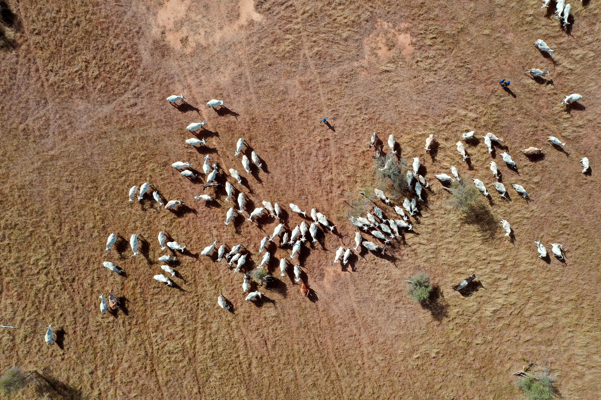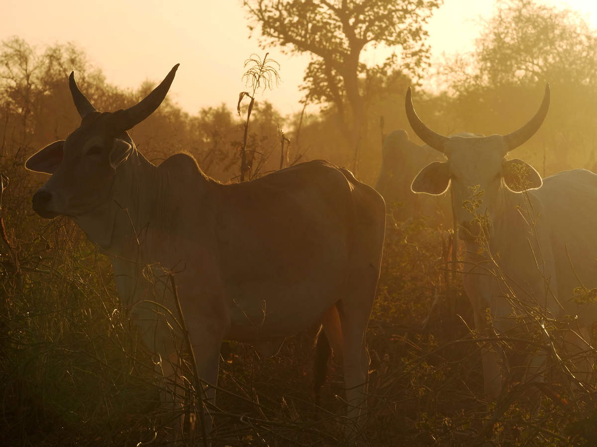 Sow's long-horned white cows do not have to walk far to fill their bellies as they roam the sun-baked fields studded with acacia and baobab trees.