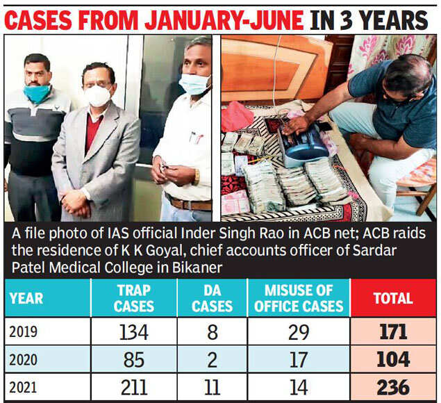 The ACB trapped many public servants in the first six months of this year. With 211 traps, the ACB brought to fore the corrupt practices allegedly by the Baran collector to SDMs in Dausa district among other cases.