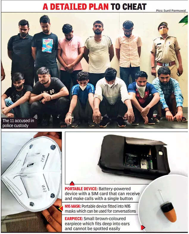 Sikar police seized N95 masks stitched with mics connected with wireless earpieces from an 11-member gang involved in cheating NEET aspirants by promising to field dummy candidates.
