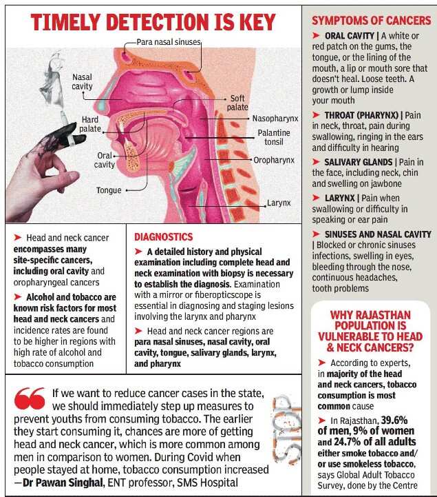 “If we want to reduce cancer cases in the state, we should immediately step up measures to prevent youths from consuming tobacco. The early they start consuming it, they will have more chances of getting head and neck cancer, which are more common among men in comparison to women. During Covid, while people stayed at home, tobacco consumption increased,” said Dr Pawan Singhal, professor ENT, Sawai Man Singh Hospital, who is conducting surgeries related to cancer.