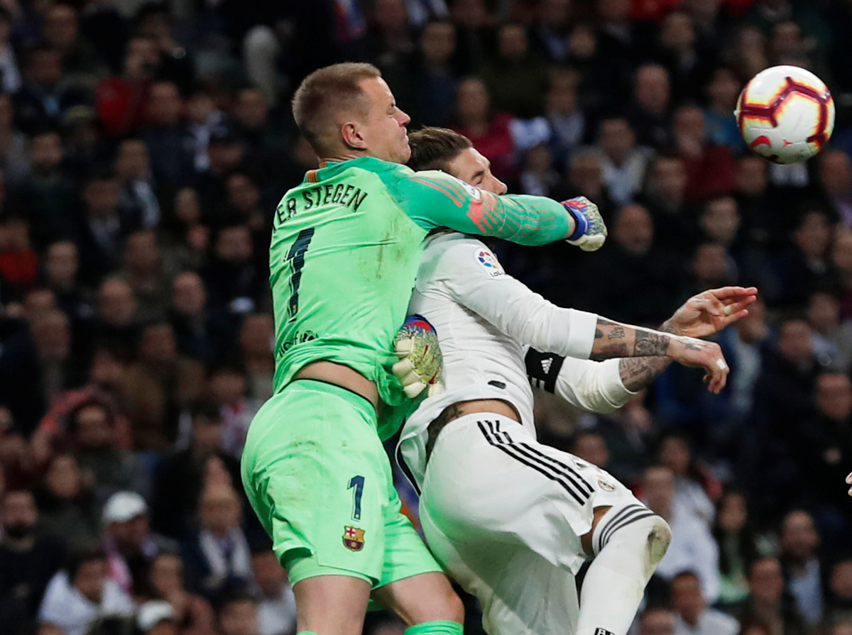 Lionel Messi and Luis Suarez were largely kept quiet in a shy display from the champions in which their defenders Gerard Pique and Clement Lenglet were the heroes instead, bravely putting their bodies in the way to snuff out Madrid.