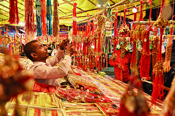 BHOPAL: Raksha Bandhan brought smiles on the faces of shopkeepers after two years of Covid as the crowd increased in the market exponentially in the past week. From Old City to the new part of the state capital, roads were in full swing for the purchase of the festival.