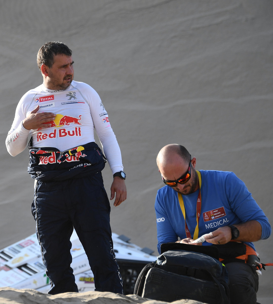 He lost two hours waiting for assistance before continuing but, with co-driver Daniel Elena in pain from the jolt in the dunes, had to accept defeat.