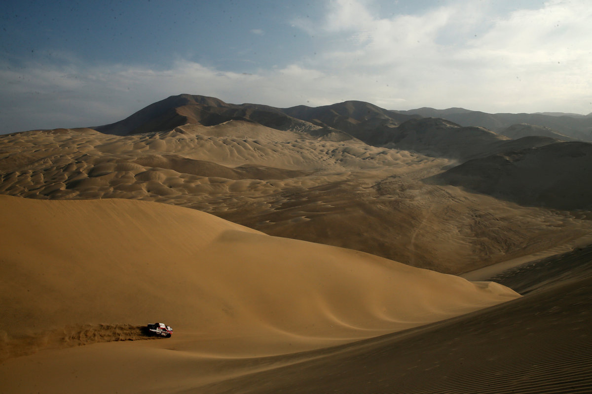 Dutch driver Bernhard Ten Brinke was third in a Toyota, but more than an hour and a quarter off the pace, with Qatari Nasser al-Attiyah fourth.