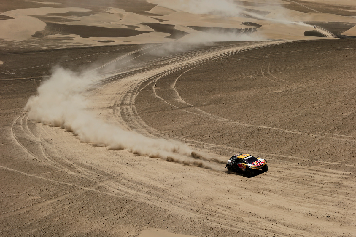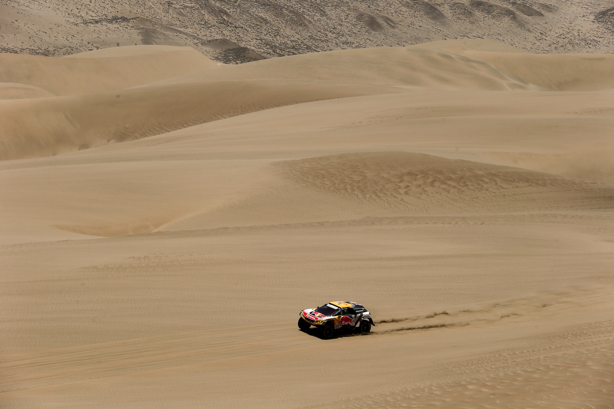 The 330km timed stretch, out into the desert dunes and back to the Pacific Port of San Juan de Mercona, was won by Peterhansel's Peugeot team mate and fellow Frenchman Sebastien Loeb.