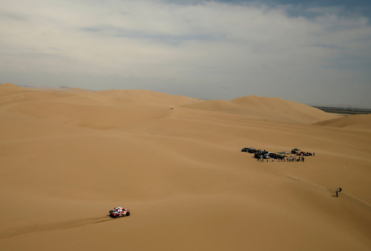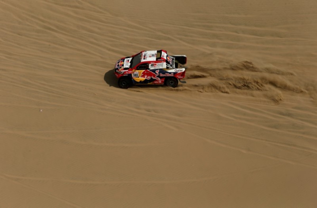 Al-Attiyah, driving a Toyota Hilux, ended the day with a 25- second lead over Dutch team mate Bernhard ten Brinke after the 35km special stage through the sand dunes around Pisco, down the coast from Lima.