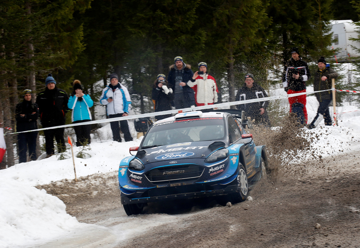 Finland's former double world champion Marcus Gronholm, a five-times winner in Sweden, made a guest appearance nine years after his last race in the WRC and at the age of 51 but retired his Toyota after hitting a snow bank.