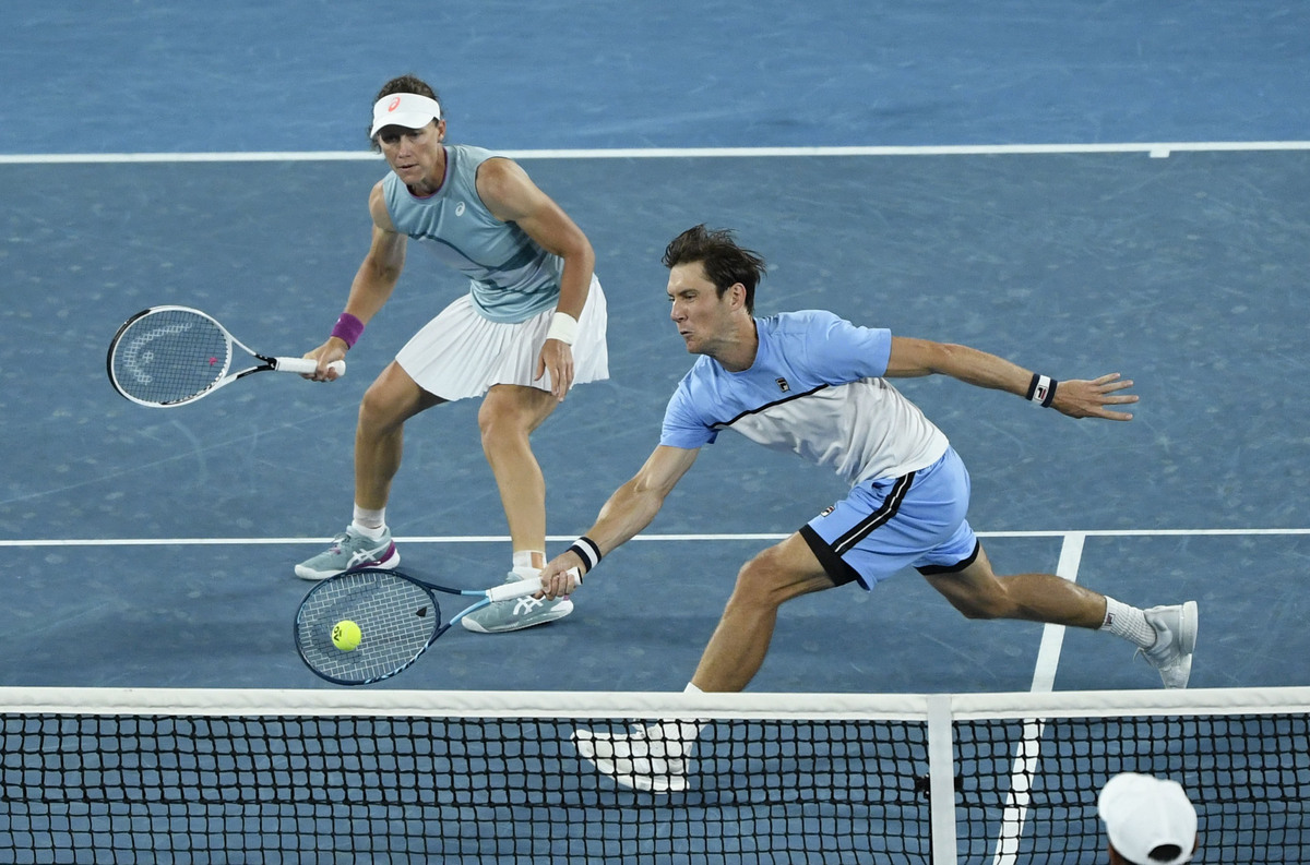 Tennis - Australian Open - Mixed Doubles Final - Melbourne Park, Melbourne, Australia, February 20, 2021 Czech Republic's Barbora Krejcikova and Rajeev Ram of the U.S. in action during their mixed doubles final against Australia's Matthew Ebden and Samantha Stosur REUTERS/Jaimi JoyTennis - Australian Open - Mixed Doubles Final - Melbourne Park, Melbourne, Australia, February 20, 2021 Australia's Matthew Ebden and Samantha Stosur in action during their mixed doubles final against Rajeev Ram of the U.S. and Czech Republic's Barbora Krejcikova REUTERS/Jaimi JoyTennis - Australian Open - Mixed Doubles Final - Melbourne Park, Melbourne, Australia, February 20, 2021 Rajeev Ram of the U.S. and Czech Republic's Barbora Krejcikova approach the net after winning their mixed doubles final against Australia's Matthew Ebden and Samantha Stosur REUTERS/Asanka Brendon Ratnayake