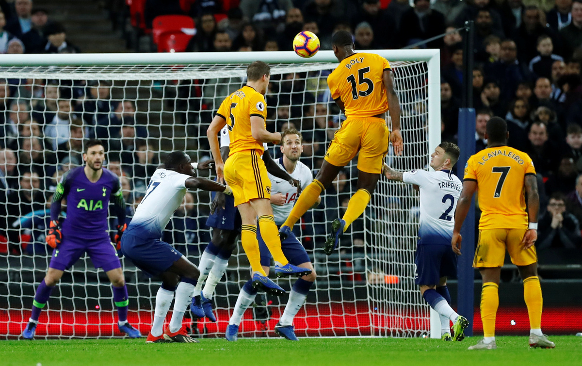 Nuno Espirito Santo's side levelled in the 72nd minute with a towering header from a corner from French defender Willy Boly after a period of sustained pressure around Tottenham's area.