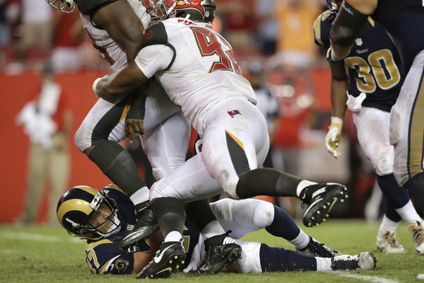 Except there were two minutes left on the game clock at Raymond James Stadium and the Rams were backed up deep in their own territory while clinging to a slim lead.