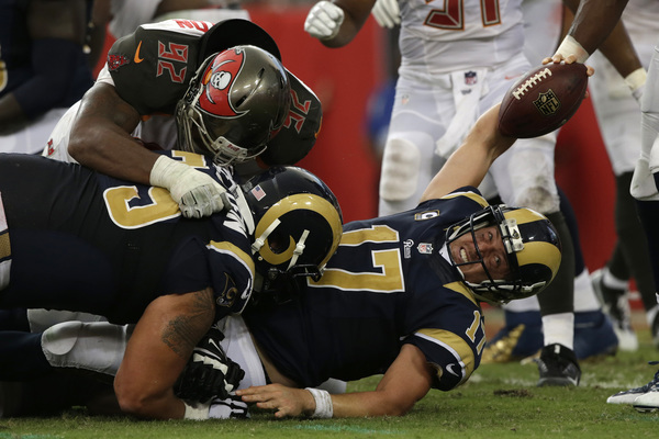 Fisher had taken a light approach during the week, gathering offensive players in the end zone to remind them what it felt like. He also showed them clips from last season's victory over the Buccaneers that he said he discovered in a box "full of touchdowns."