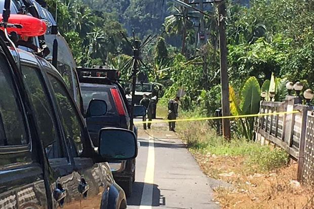 Ranger Theerawat Kanthanit, 28, sustained shrapnel wounds to his leg. The injured civilian was identified as Mayuree Jaedeurae, 38. Both were taken to Bannang Sata Hospital.