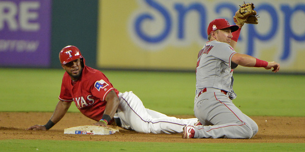 A.J. Griffin was knocked out in the second inning after walking four batters, including two with the bases loaded as the Angels scored three times in the second to take a 3-1 lead. Griffin was charged with three runs on three hits and four walks. It's his shortest outing of the season for Griffin. Nick Martinez took over and pitched 31/3 innings of scoreless relief, allowing one hit and a walk. At one point in the second inning, Griffin threw 12 consecutive balls (including a hit-by-pitch) before Martinez took over and threw three consecutive balls. After walking C.J. Cron to start the fifth, Martinez made a dazzling behind the back stabbing catch of a line drive from Simmons to double up Cron for a double play.