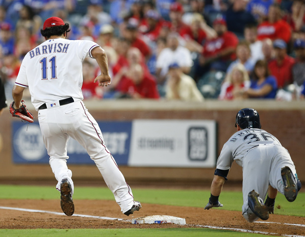 Darvish allowed three runs on six hits and two walks over 6 2/3 innings. He left with two on and two outs in the seventh. Jake Diekman replaced him and surrendered a two-run double down the left-field line to pinch-hitter Franklin Gutierrez, which pulled Seattle to within 6-3.