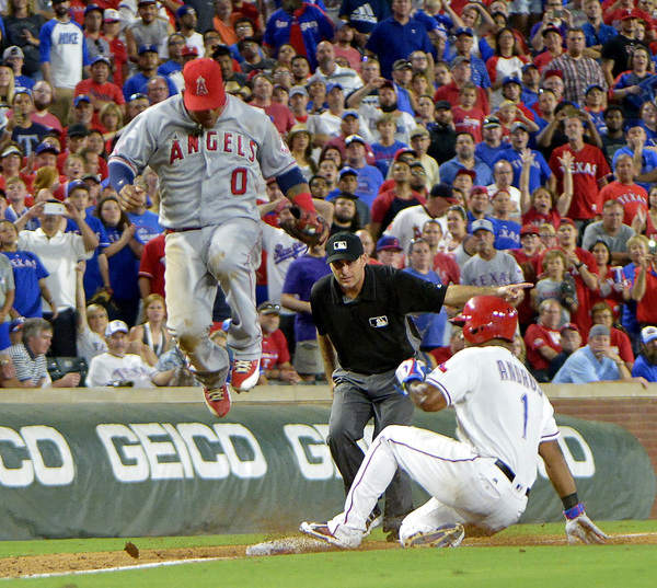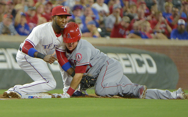 Jurickson Profar tripled to start the third and scored on Nomar Mazara's single to cut the Angels' lead to 2-1. The Rangers scored three times in the fifth. Elvis Andrus started it with a walk and scored on Mazara's single through the right side. Carlos Beltran followed with a two-run homer to pull the Rangers to within 5-4. In the eighth, Beltran reached on an infield single with one out and pinch-runner Delino DeShields was at second after Beltre's groundout but Rougned Odor popped out to end the inning. Andrus doubled with two outs in the ninth and Profar, representing the winning run, was hit by a pitch, but Carlos Gomez grounded out to third base to end the game.