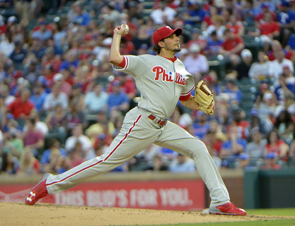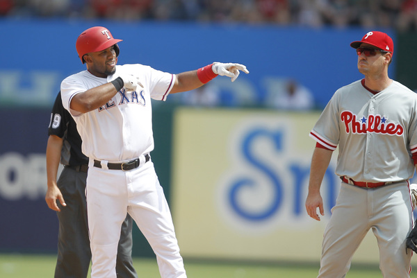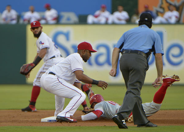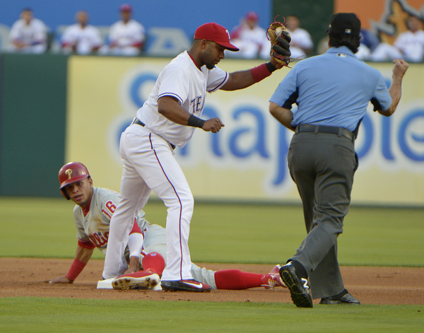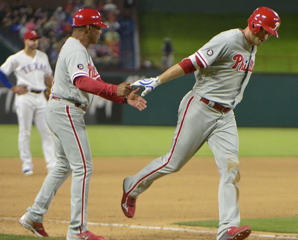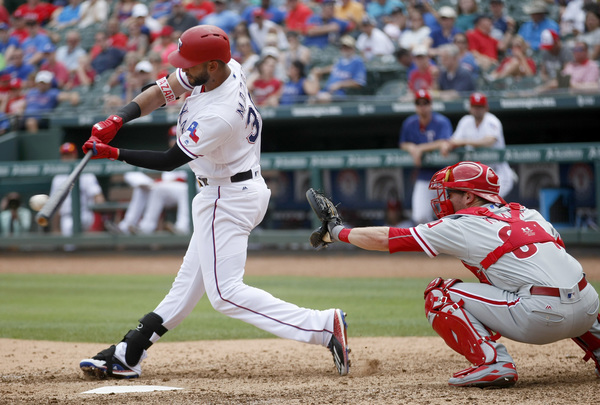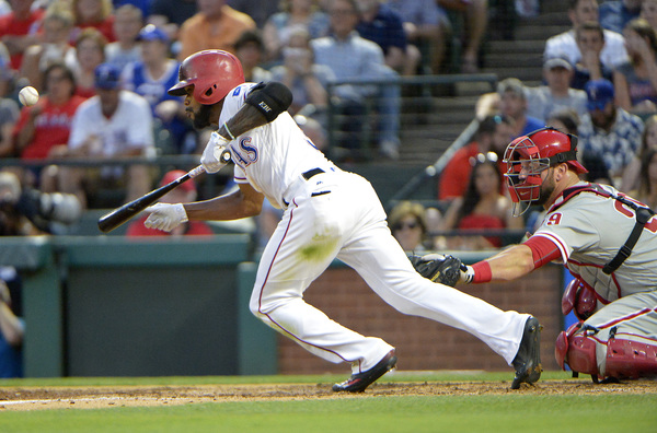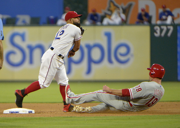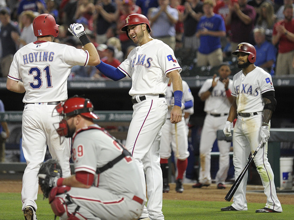 Eflin allowed a run in the third on a sacrifice fly, but there were two outs and no one on base. He plunked Joey Gallo with a faulty slider. Jared Hoying smashed a double down the right-field line that flew underneath first baseman Tommy Joseph's glove. Delino DeShields bunted for a single. Eflin spiked a change-up that skipped to the backstop for a run. Then Shin-Soo Choo singled to right and plated two more runs.