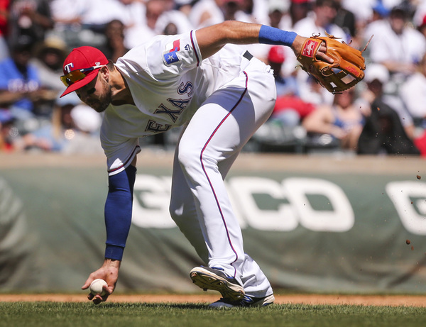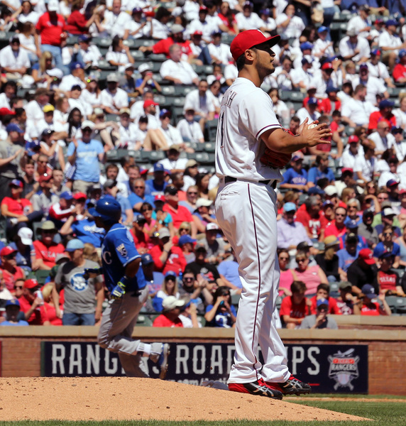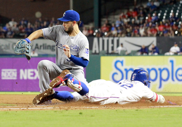 Cashner executed an on-the-bag throw to second to pick off Royals third baseman Mike Moustakas to end the first. Rangers catcher Jonathan Lucroy gunned down Royals second baseman Raul Mondesi trying to steal second in the third.