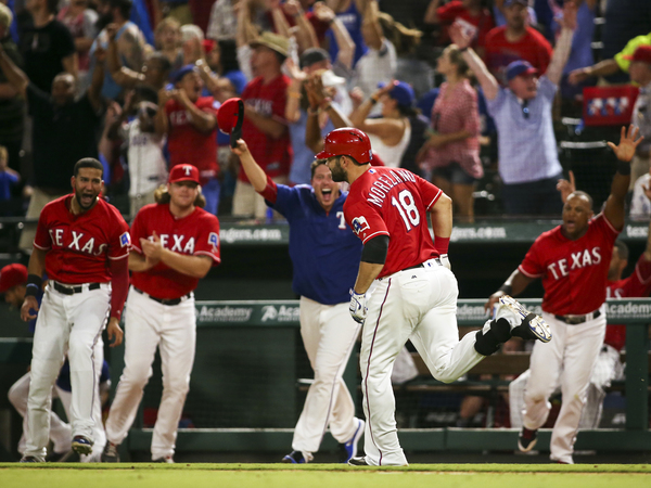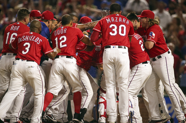 Rangers third baseman Joey Gallo set up the go-ahead run with a one-out double into the right-field corner. DeShields followed with a 10-pitch at-bat that ended with him lining Travis Wood's pitch into left field to score Gallo from second and ignite the Rangers' celebration.