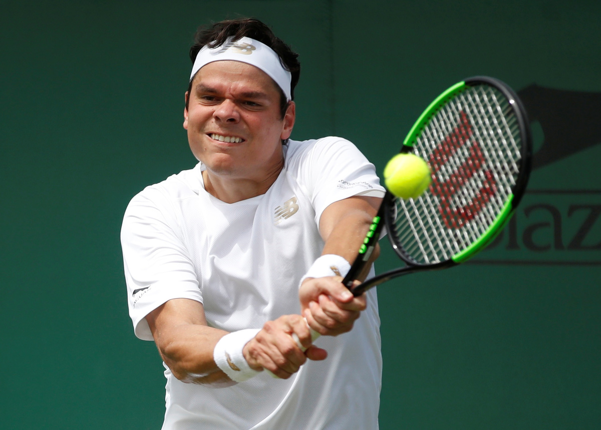 LONDON (Reuters) - Canadian 15th seed Milos Raonic emerged a relatively easy winner from the battle of the big men on Friday when he outgunned American Reilly Opelka in straight sets to advance to the fourth round at Wimbledon.