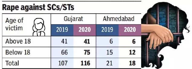 AHMEDABAD: The rape of Scheduled Caste and Scheduled Tribe children increased by 13% in 2020 as compared to 2019. Of the total cases of rape of SC/ST women, more than 60% were of girls below 18. Ahmedabad city tops the chart when it comes to the rape of SC/ST children, shows the data of the National Crime Records Bureau (NCRB) released on Wednesday.
