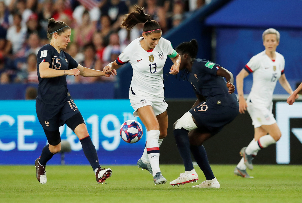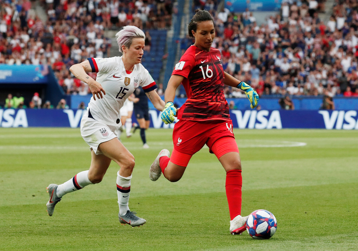 PARIS (Reuters) - Megan Rapinoe struck twice as the United States beat hosts France 2-1 in the women's World Cup quarter-finals at the Parc des Princes on Friday to set up a last-four clash with England.