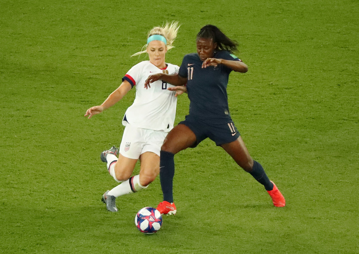 France right winger Kadidiatou Diani put left back Crystal Dunn under intense pressure with her frequent dribbles down the flank, while on the left Amel Majri pushed progressively into an advanced role to the consternation of right back Kelley O'Hara.