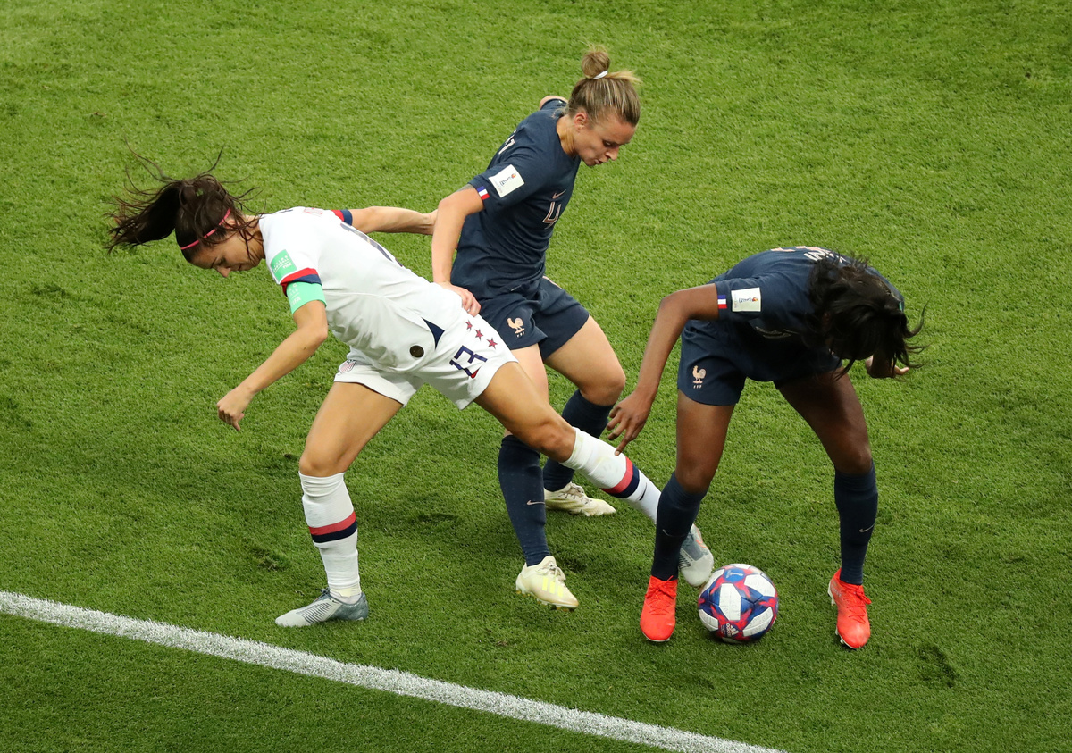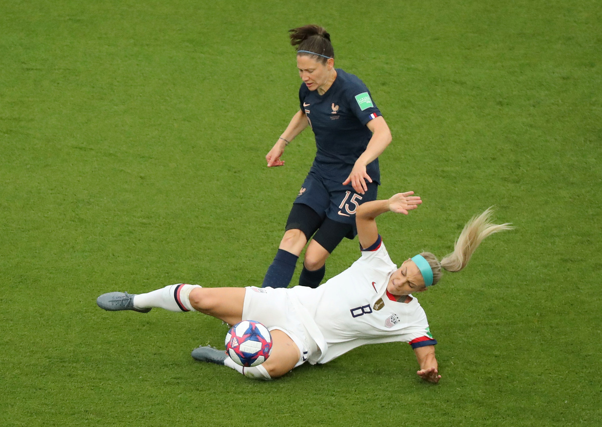 Seeing the French defence had put just two players in the defensive wall for the early free kick, Rapinoe accepted the invitation and her low drive flew through a crowded area and past unsighted goalkeeper Sarah Bouhaddi.