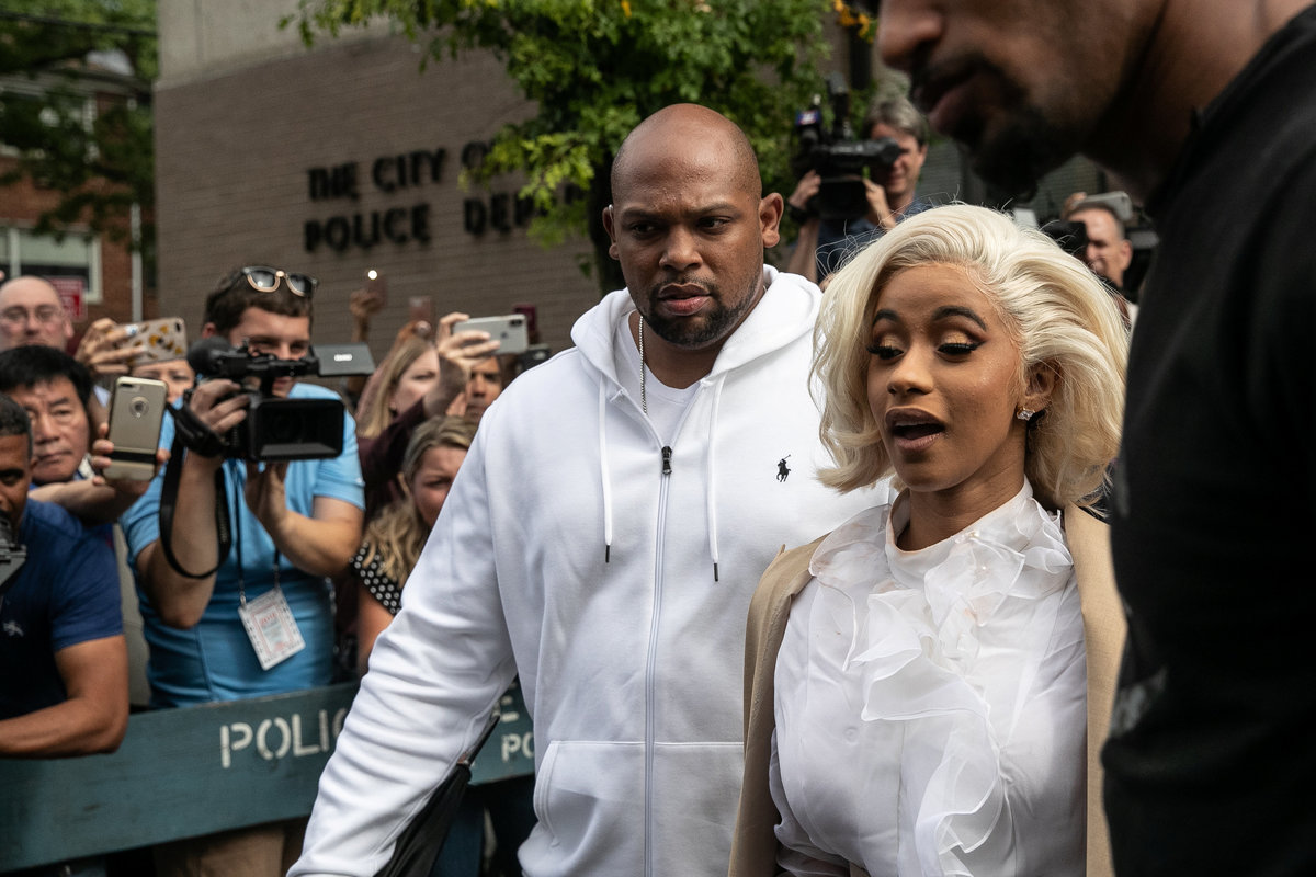 Cardi B was seen entering a police precinct shortly after 9:30 a.m. (1330 GMT) on Monday, according to local media. Her bodyguards shielded her with black umbrellas.