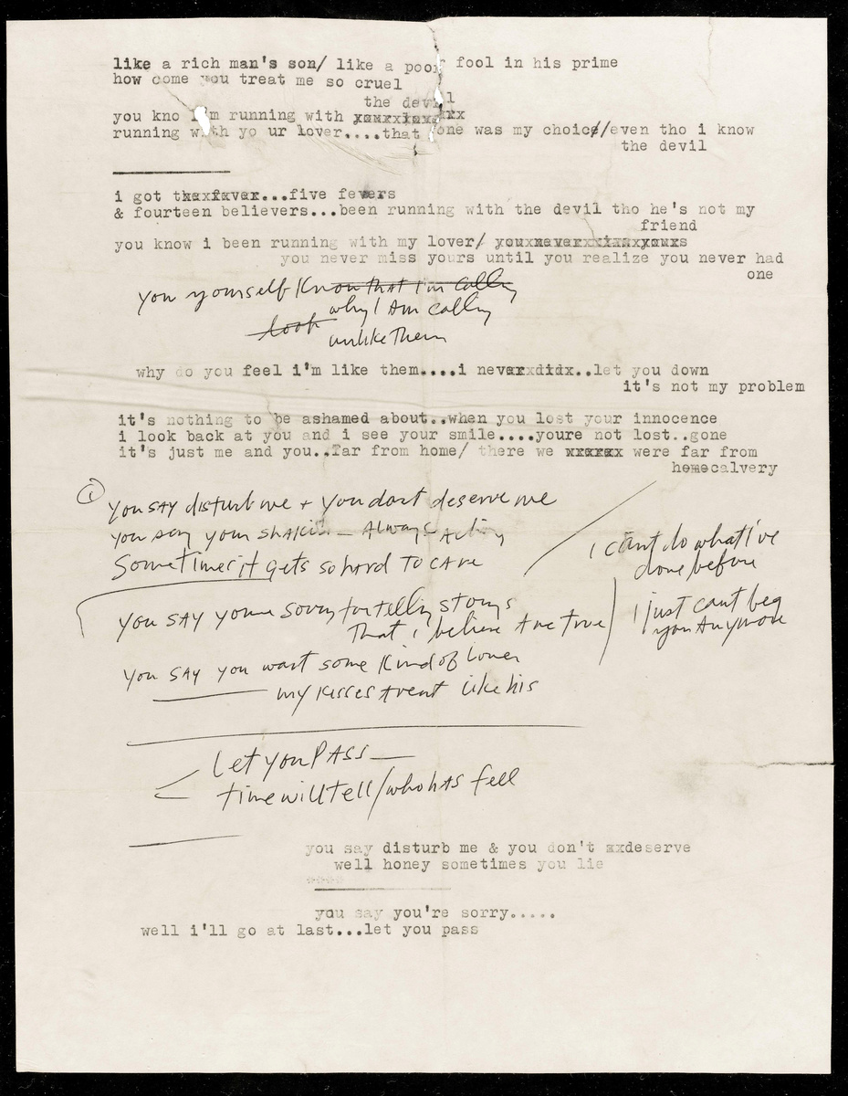 The single sheet of paper shows the American singer's creative musings as he drafted "Most Likely You Go Your Way", one of the album's most memorable songs.