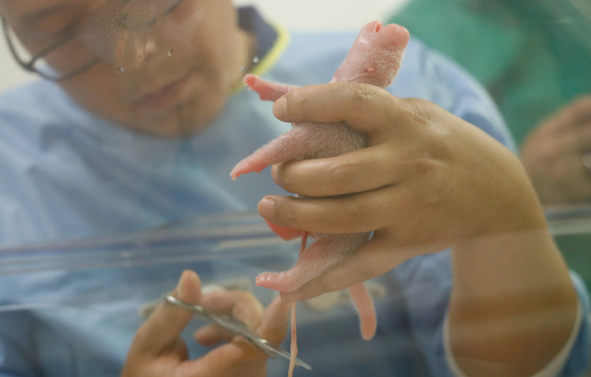 The cubs, described by the zoo as "pink shrimp" on Facebook, are pink, hairless and much smaller than their parents. According to the World Wildlife Fund, baby pandas are 1/900th the size of their mother.