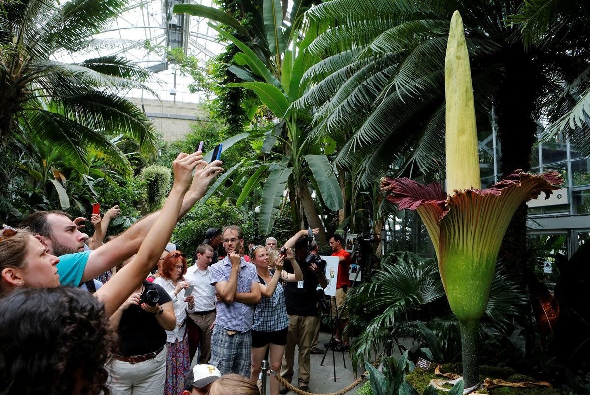 "When you're above it, you need a gas mask. This is really one of the rock stars of the plant kingdom," said Todd Brethauer, a volunteer who carries a jar with a sample of the odor to give garden visitors a whiff.