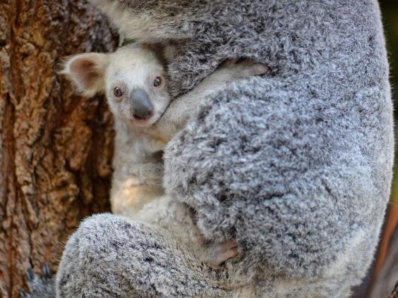 Visitors to an Australian zoo are being treated to a rare sight since the birth of a number of koala joeys, one of which is adorned with white fur.