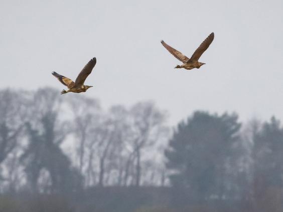 In one picture, the American bittern can be seen flying close to a Eurasian bittern, a close relative that is far more common in the region.